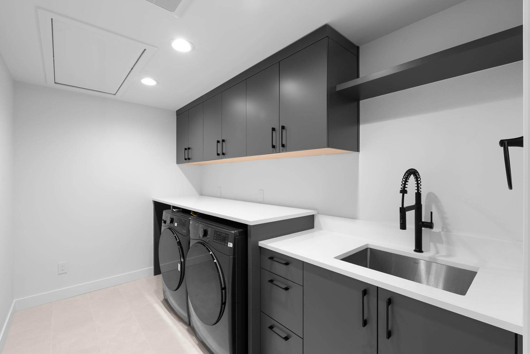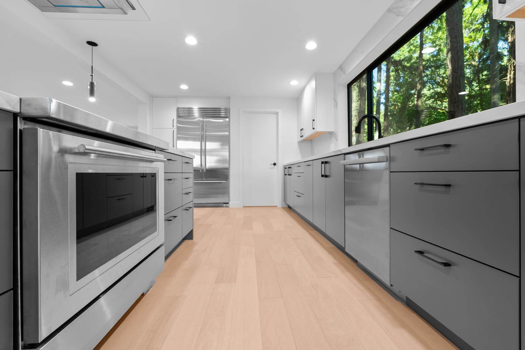 Cabinetry was selected to provide ample storage without overwhelming the space visually. Clean lines and carefully integrated hardware help the kitchen feel modern while maintaining a timeless aesthetic.